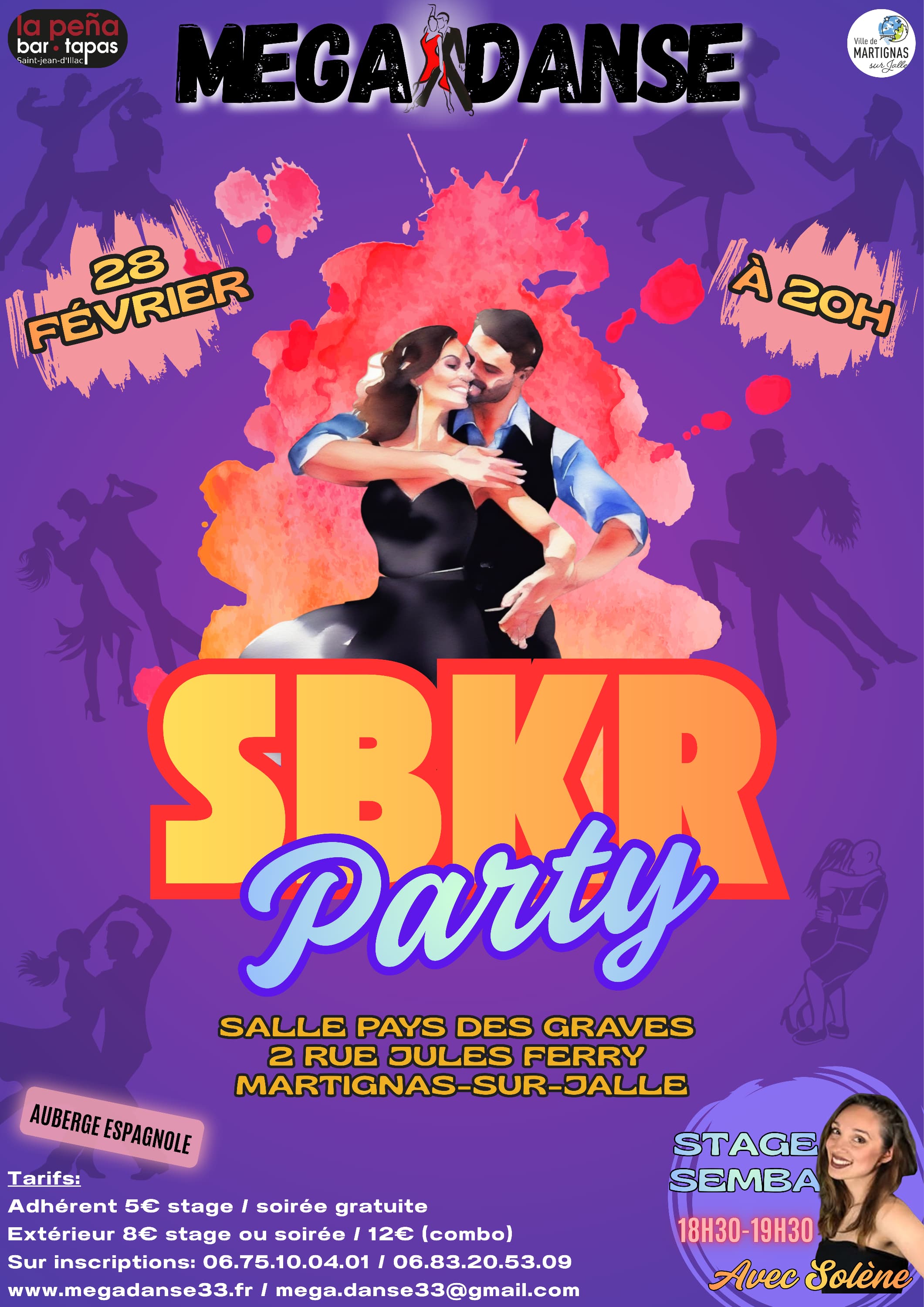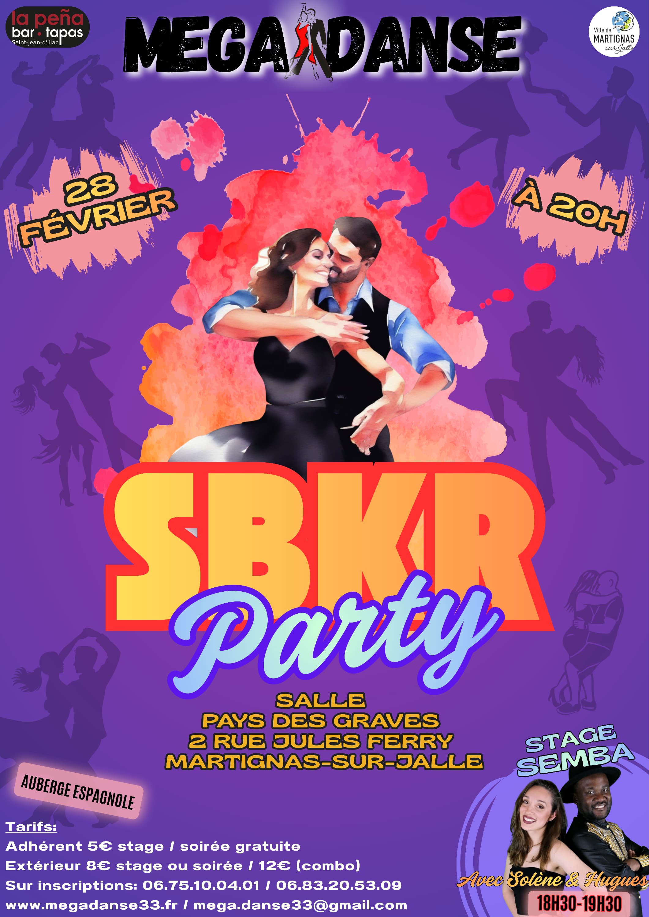 Au programme beaucoup de SALSA / BACHATA / KIZOMBA / ROCK et une nouveauté...du SEMBA avec les présences exceptionnelles de Solène et Hugues !!!